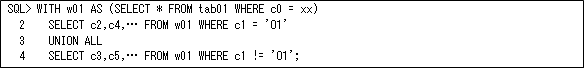 パーティション化することができない場合は、以下のようにWITH句を使用することでテーブル・スキャンは1回のスキャンで済みます。ただし、一時表を作成しますので、その一時表のサイズが大きいときは(テーブルの殆どのデータで一時表を作成するときなど)、問題になりますので注意して下さい(これは第11回で説明しましたよね)。