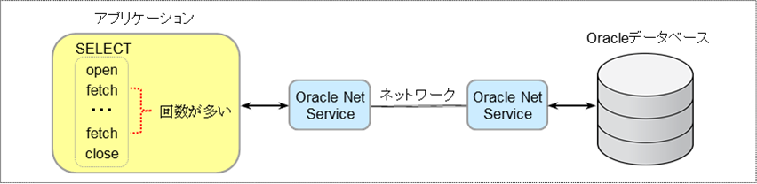 1回のFETCH文で取得する行数の数です。これを大きくすることで、FETCH回数を削減することができます(これで、1回の転送サイズを大きくすることが可能になります)。これは、SQL*PlusのSET ARRAYSIZEコマンド(デフォルトは15です)、JDBCのsetFetchSizeメソッドのフェッチサイズ(Oracle JDBCのデフォルトはOracle行プリフェッチの10です)、Pro*Cの配列フェッチ(変数の配列サイズ)などで設定できます。ただし、ネットワークの送受信サイズが小さいと効果がありません。 - SDU(Session Data Unit)サイズ