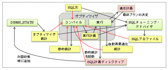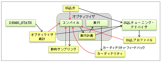 オプティマイザ(CBO)のコンパイル(実行計画の作成)時に入力する統計には、以下の情報(ディレクトリ上に作成するオプティマイザ統計、メモリ上に作成する動的サンプリングとカーディナリティ)があり、このような情報を使用して正確な実行計画を作成するようにします。また、SQLチューニング・アドバイザでSQLプロファイルを作成して補正することもできますが、これは別の機会に説明します。