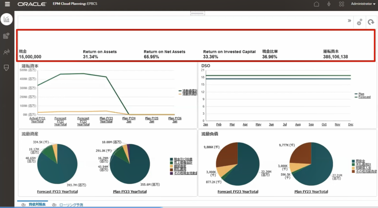 Cloud EPMには財務モジュールというBS、PL、CF財務三表を連動した予算・予測の作成・実績管理が可能な事前定義モデルもご用意しており、それをベースに自社のKPIやレポートを追加・修正しながらご活用いただくことも可能です。