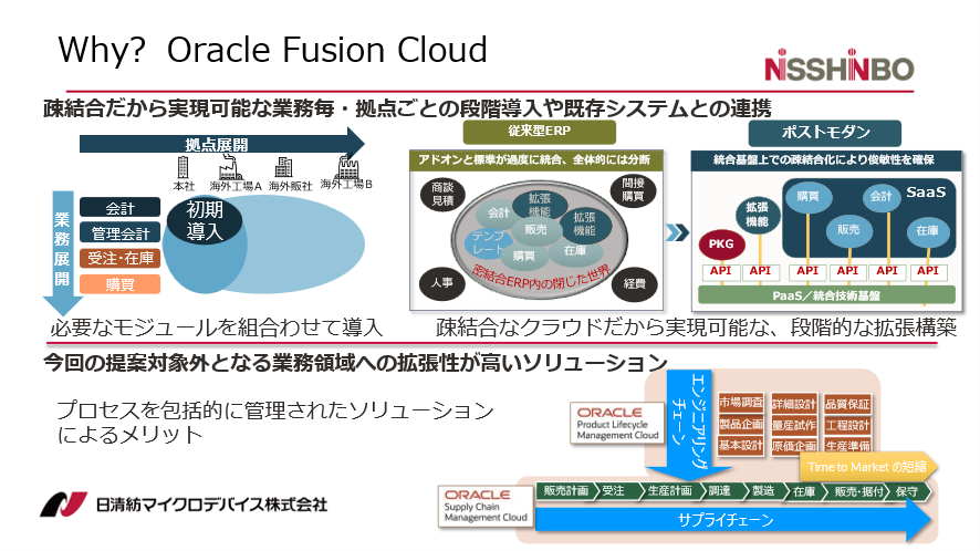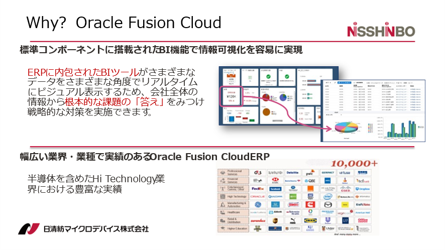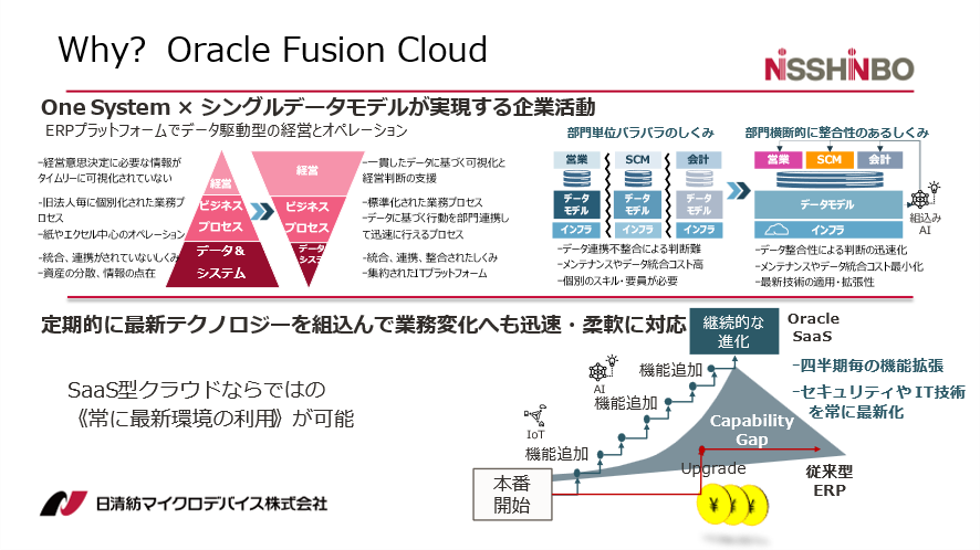 | <事例講演> 日清紡マイクロデバイスの経営目標を支えるDX戦略 ~One Systemのオペレーション確立とOracle Fusion Cloud Applicationsの活用~ |