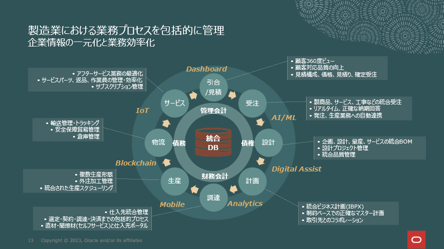ちなみにオラクルはクラウドベンダーではありますが、同時にSPARCチップも含め実は製造業の側面をもっていて、Cloud SCMを活用して過剰在庫や業務面も含め多くのコストを削減したり、供給計画をよりタイムリーに変更したり、自社製品を活用して業務変革を進めてきています。