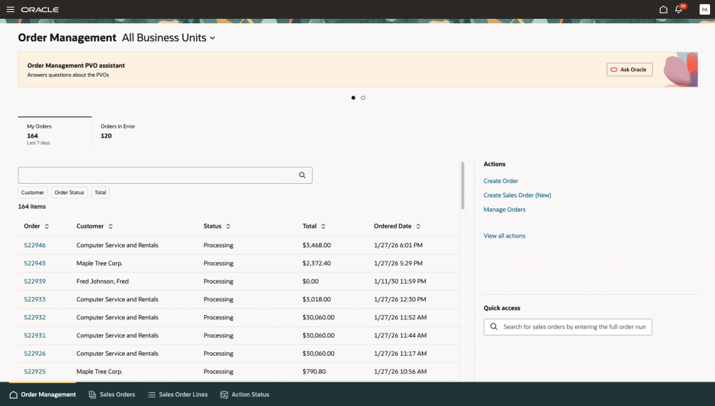 Oracle’s latest Order Management (OM) release, 26A, is more than a feature drop, it’s an insight into the vision driving product direction and an expansion of AI features released previously. Order Management 26A delivers on its ongoing themes of intelligent automation, friction-free interactions, and a highly productive user experience.