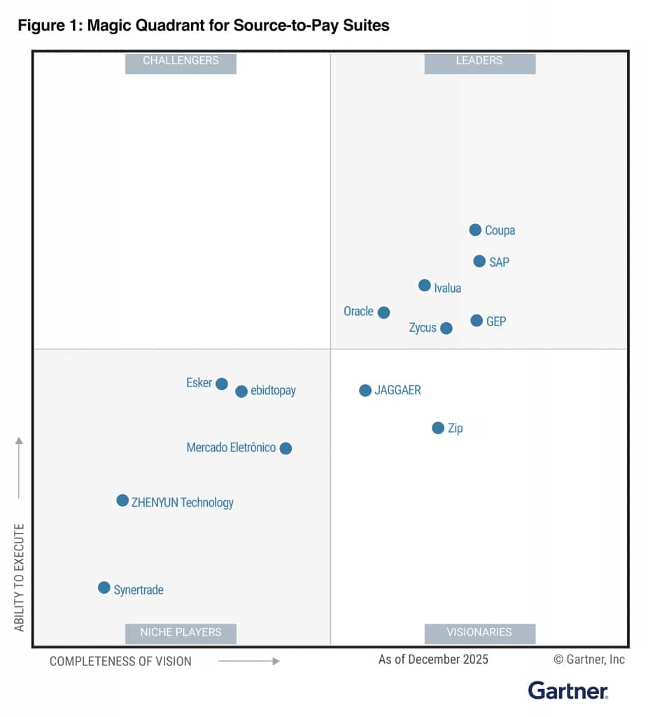 Gartner® Magic Quadrant for Source to Pay Suites, Micky Keck, Kaitlynn Sommers, Lynne Phelan, Magnus Bergfors, Alex Brady, 21 January 2026.