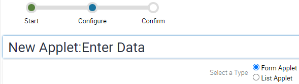 When the wizard starts, pick the type of Applet you wish to make. Initially, there are two choices (List Applet and Form Applet). We will be adding other types to this list.