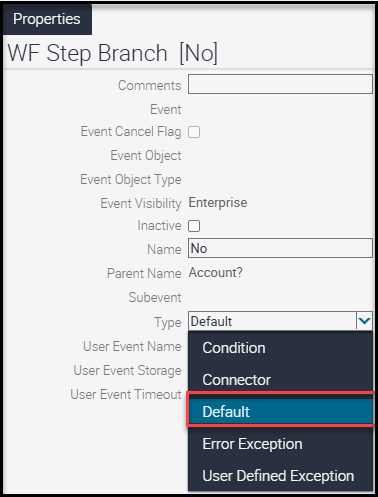 If no Account record is found, what happens next? In this case, our “No” branch acts as a “Default” connector. The Default connector executes when none of the other branch conditions are met. If there isn’t an Account record, the process follows this Default (No) branch. The Default connector is a specific type you intentionally select—it serves as the fallback path, like the “else” condition in scripting. Including a Default branch in your Workflow Process is considered a best practice, ensuring the process always has a defined path forward even when specific conditions aren’t met.