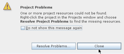 Because we don’t have all the specific WebLogic Maven plugins installed here yet NetBeans will find this issue and flag it with a pop-up window. We’re not going to be building anything here only editing the code so click “Close” to ignore: