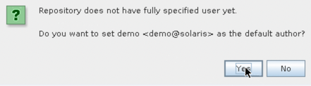 This will complain that you don’t have a user set up yet. For now we can just use the default and click “Yes“: