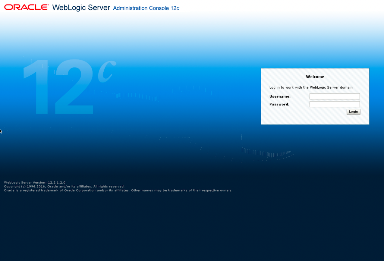 ----> 'weblogic' admin password: welcome1