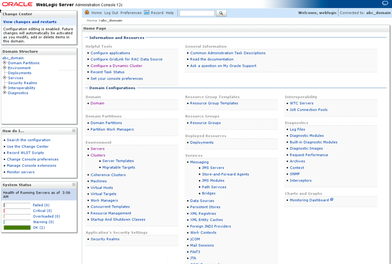Which should give you the WebLogic Server admin home page: