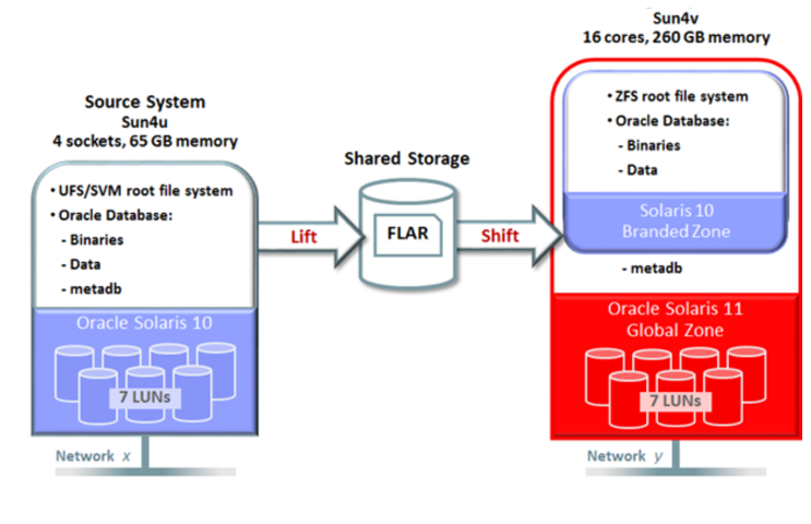 We validated the end-to-end migration procedure using an Oracle Database use case running on UFS and SVM on Oracle Solaris 10 source system. After the migration, the Oracle Database is up and running in an Oracle Solaris 10 Branded Zone on a ZFS root file system.