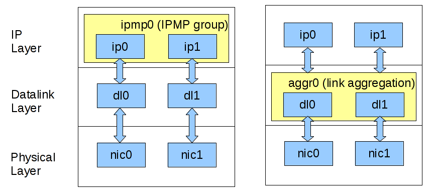diagram below shows the difference between IPMP and link aggregation.