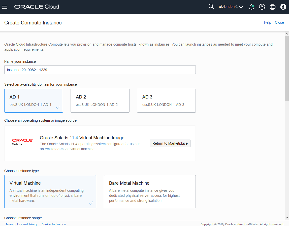 I’ve not shown the remainder of the create instance page here, but you’ll need to select the shape, provide an ssh key, and select the virtual network to which the instance will be connected. Once the instance is launched, you’ll be able to ssh in as the opc user within a couple of minutes. That’s all it takes to get started with Oracle Solaris in OCI! You’ll likely also want to review my prior blogs on using Solaris in OCI to make best use of the cloud: