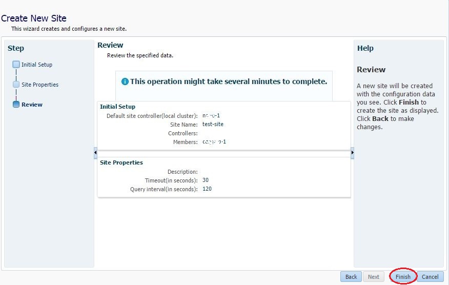 - In the Review step, review the already entered values and click Finish.