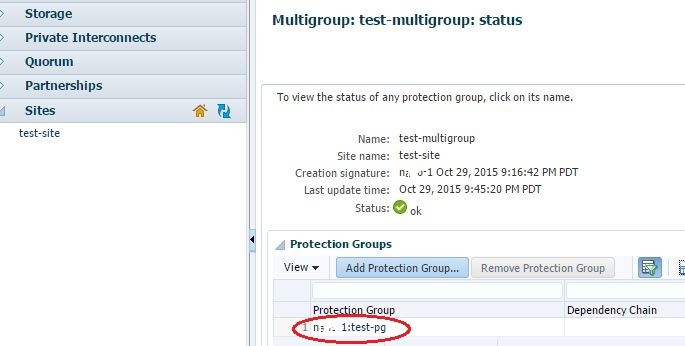 Browse to the Multigroup details page as mentioned above, then click the protection group name in the Protection Groups table.